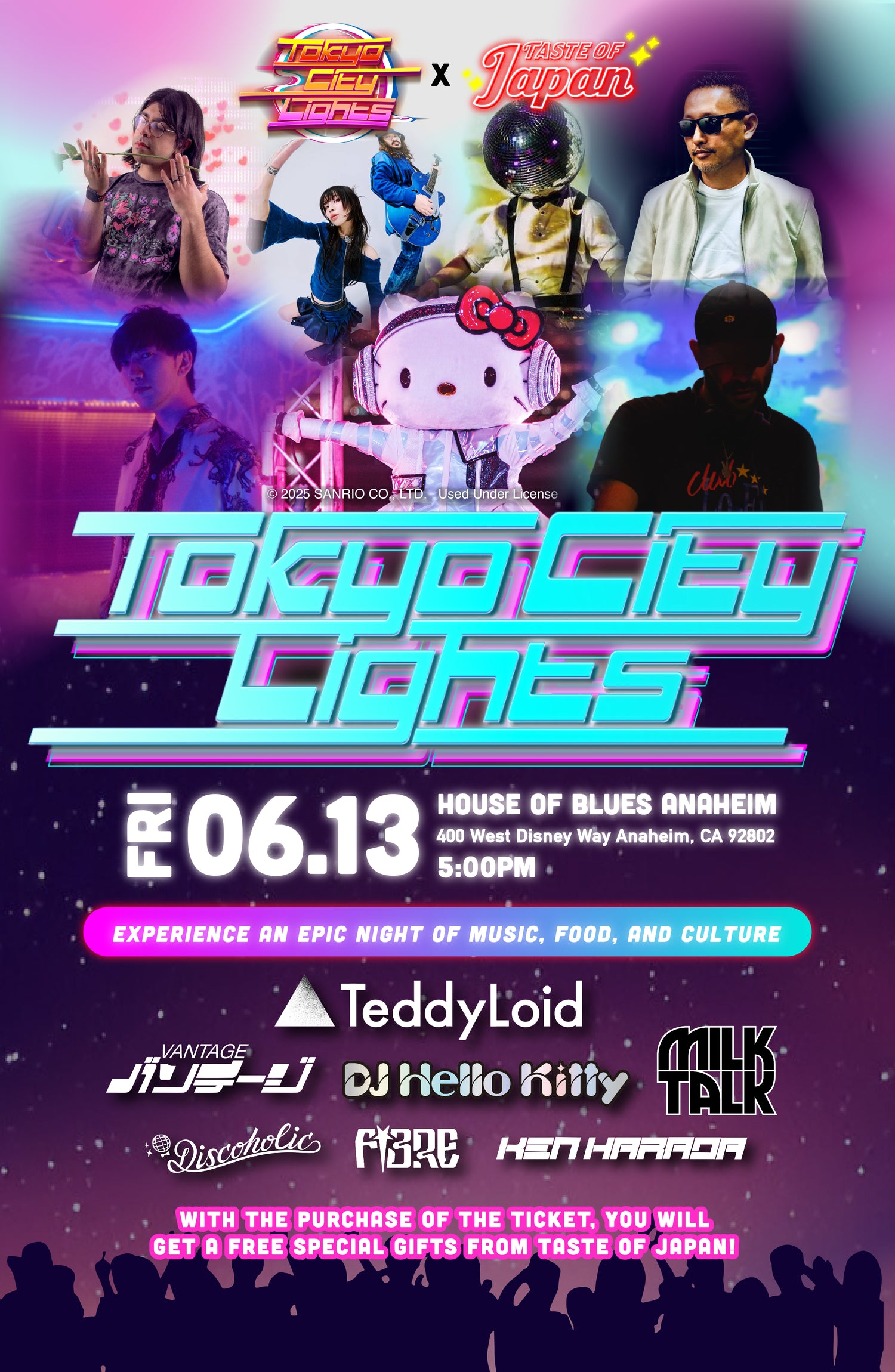 Tokyo City Lights is BACK! Teaming up with Taste of Japan, experience an epic night of music, food, and culture! Enjoy an exclusive lineup featuring TEDDYLOID, VANTAGE, MILK TALK, FIBRE, DISCOHOLIC, and KEN HARADA! Plus, DJ HELLO KITTY returns for an unforgettable set!